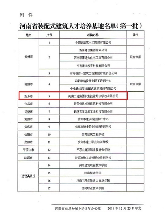河南省住建厅关于公布我省装配式建筑人才培养基地(第一批)的通知文件