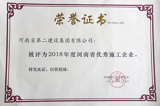 米兰milan(中国)荣获“2018年度河南省优秀施工企业”
